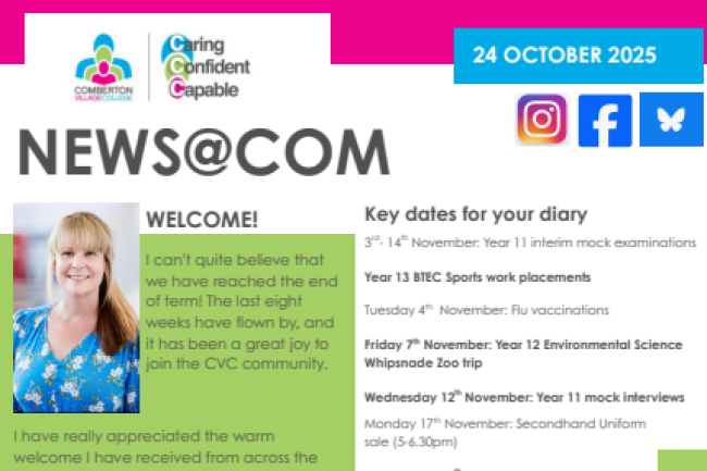 Since December 2001 Comberton Village College has produced a magazine called News@COM which was published at the end of each term, highlighting the events, activities and successes of our college community. Many of our previous editons can be found on our News@COM page.