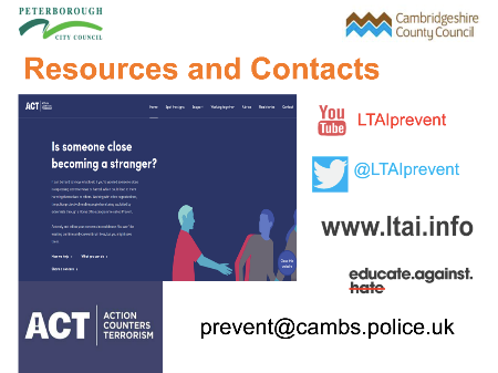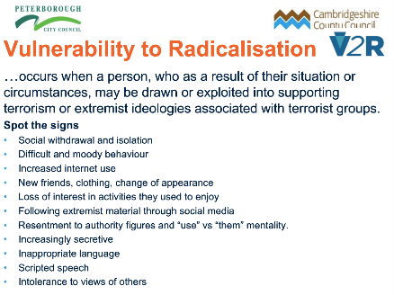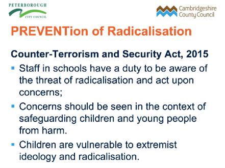 Staff at Comberton Village College are trained on PREVENTion of Radicalisation to be aware of the threat, spotting the signs and how to report any concerns.